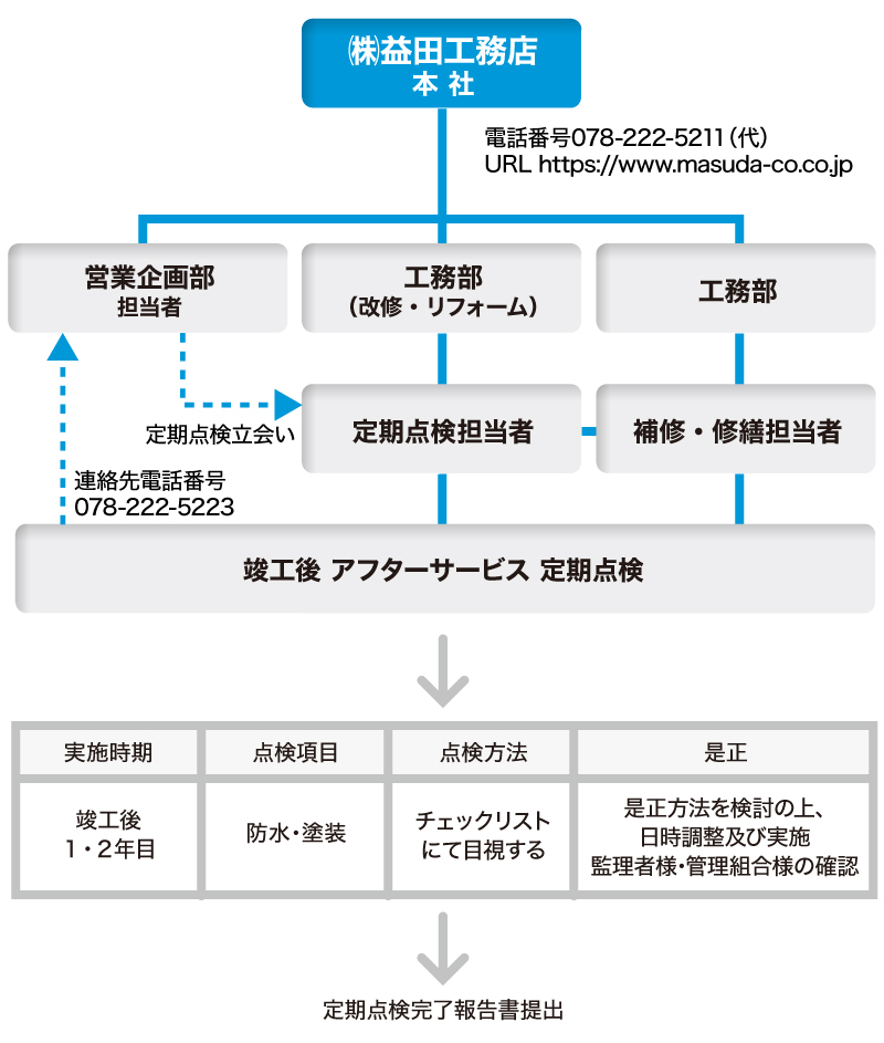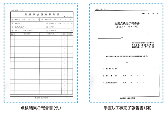 弊社では契約保証年数に限らず、1・2年目に定期点検を実施し、その結果をご報告致します。