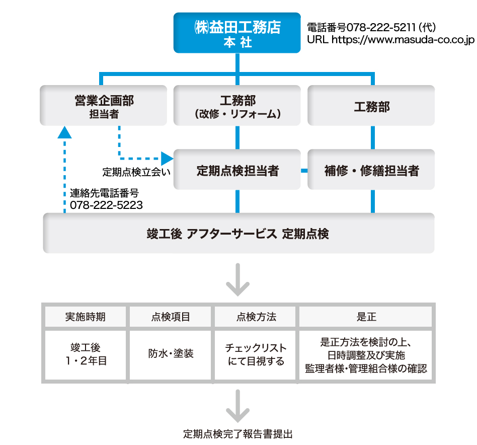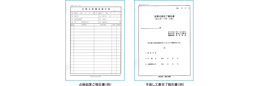弊社では契約保証年数に限らず、1・2年目に定期点検を実施し、その結果をご報告致します。